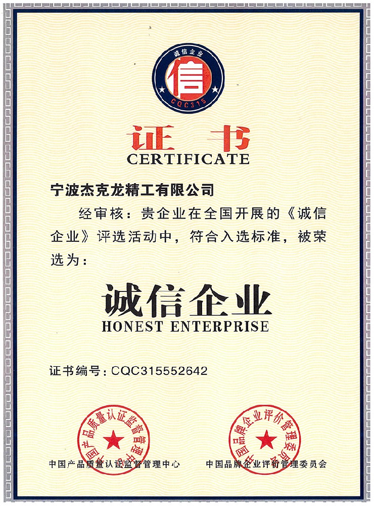 杰克龍精工先后通過了ISO9001、ISO14001和ISO45001三大管理體系認證,杰克龍精工被認定為“高新技術(shù)企業(yè)”。